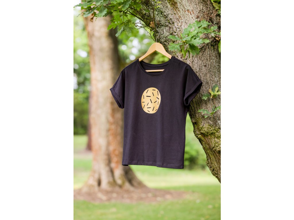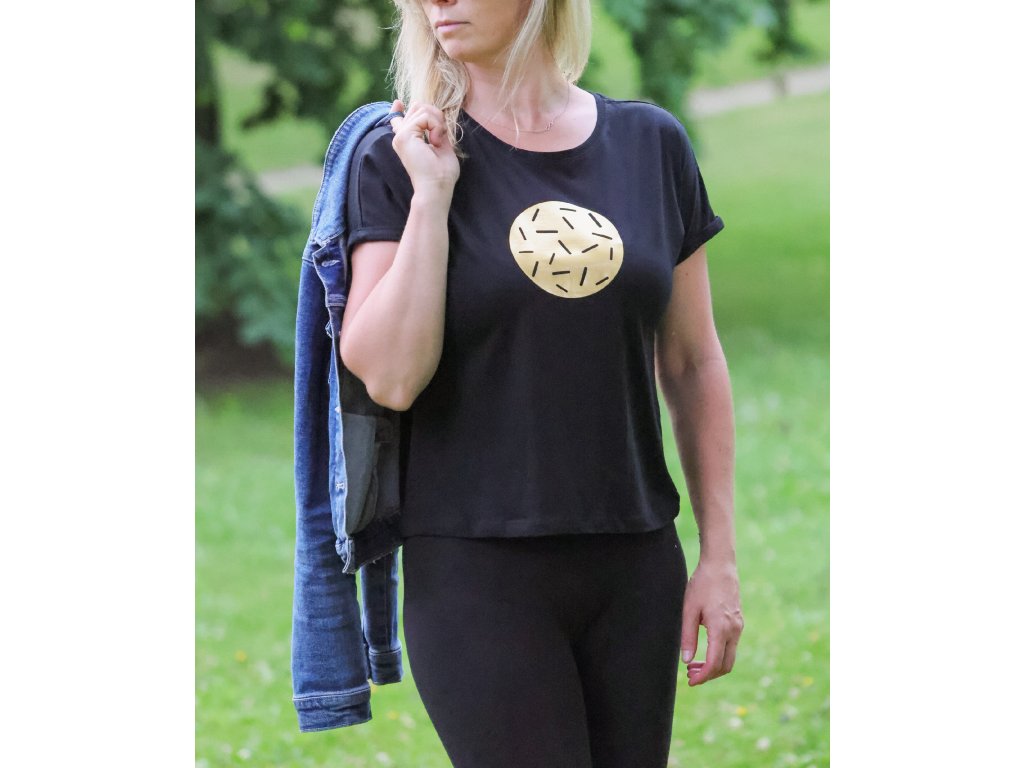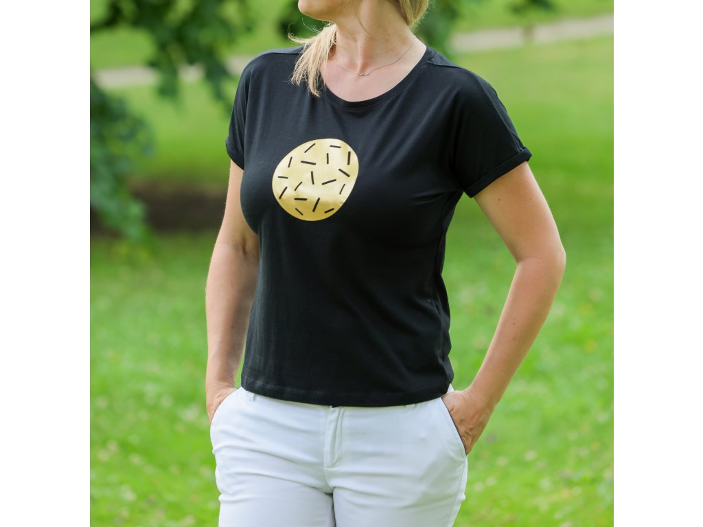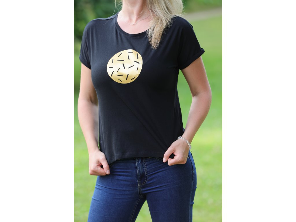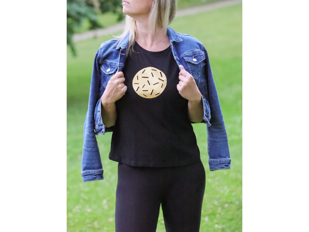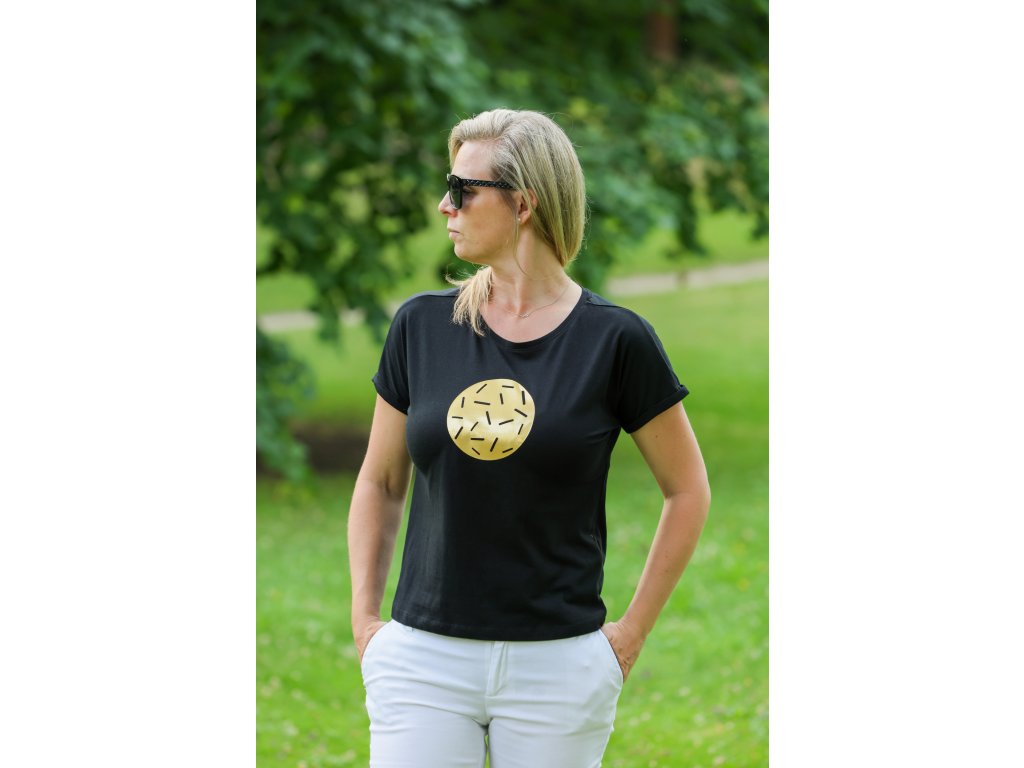 Černé tričko ze 100 % bavlny s designovým potiskem - zlaté kolečko