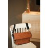 Přehýbací kabelka je vyrobena z hnědé dírkované koženky,