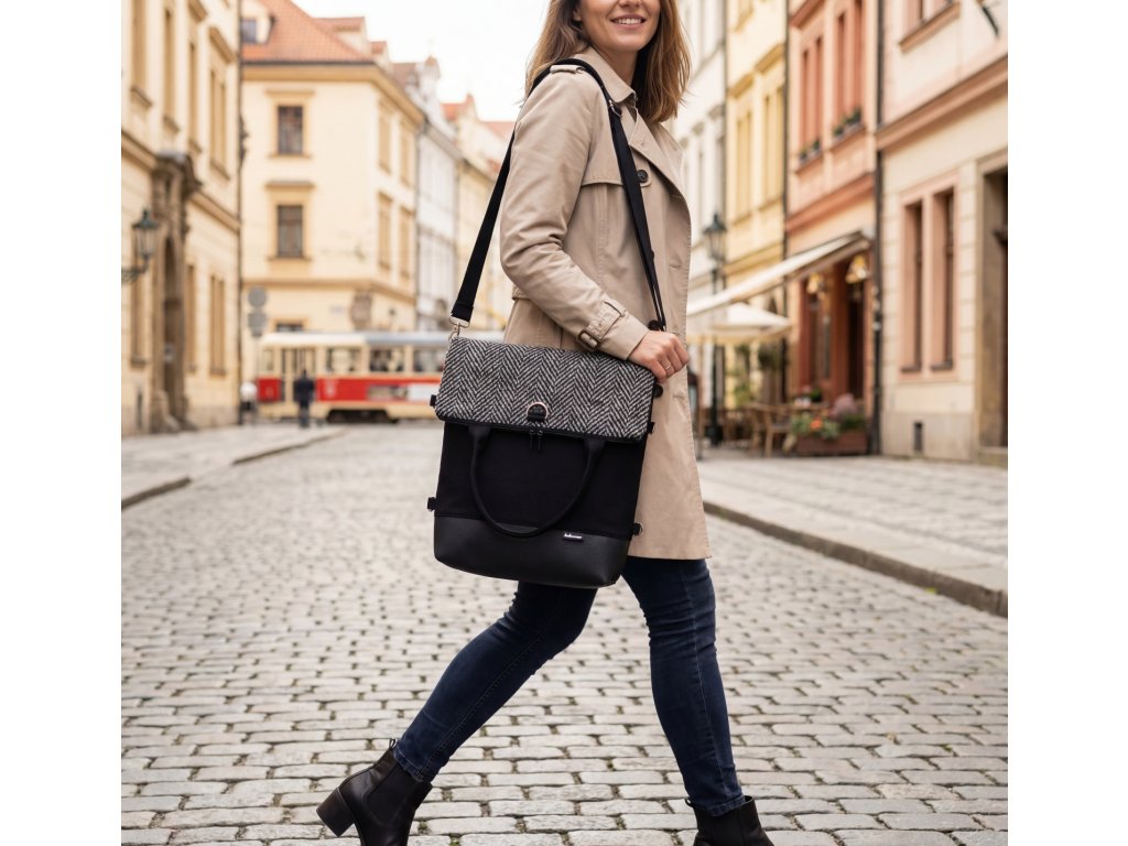 Kabelkobatoh je vyroben tak, aby se dal nosit jako kabelka, taška a jednoduchým přepnutím dlouhého ucha jako batoh, ruksak na záda, taška crossbody-křížem, psaníčko a jako taška na kočárek.
